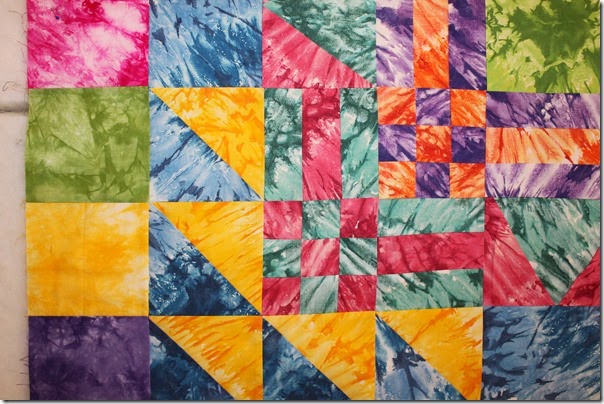 For some reason we decided the quilt wasn’t big enough and we put our own hand died fabric around the outside rather than more of the original fabric. It doesn’t add to the quilt, in fact after years of hindsight I think it detracts. Lord knows why we made that decision. I’d unpick it but then I think it’s too small to do anything with, and adding different fabric would only put me back in the same position as I already am with it.